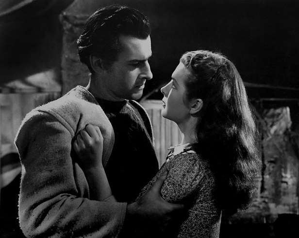 Leading the farmers – variably, given their tendency to row – is Stewart Granger as Hugh Davin. He lives with his Ma – who is feistier than her son and given to eulogising the feist of his Pa. Granger has a lovely horse he’s been training. And he has a man’s flopsome hair of the time and what may well be a nice, beige cardigan. Oh – and an accent. He’s Irishish. I assume the ladies adored him.